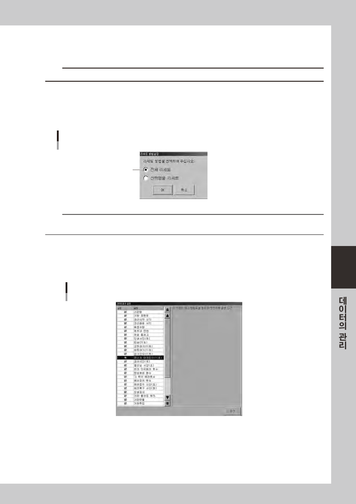 리세트 방법을 선택