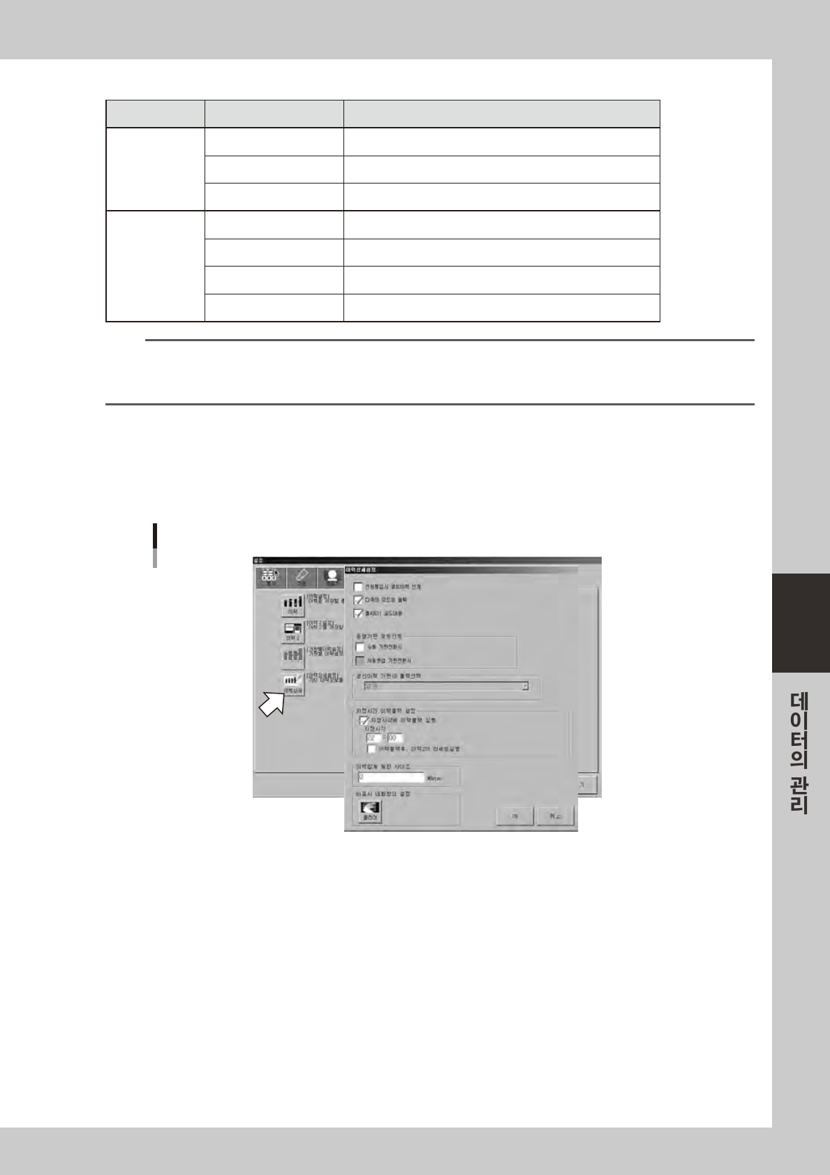 「이력」항목의저장처를설정할경우는 ,[ 이력 ] 버튼을눌러주십시오 .