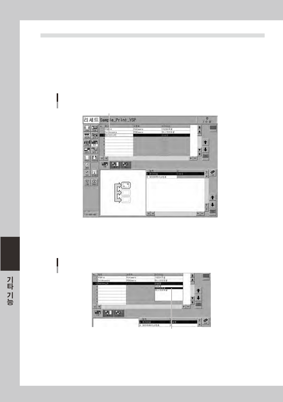 「기본」탭화면의「마크타입」에서기판피듀셜마크를작성할때는「기판피듀셜」로 ,마스크피듀셜