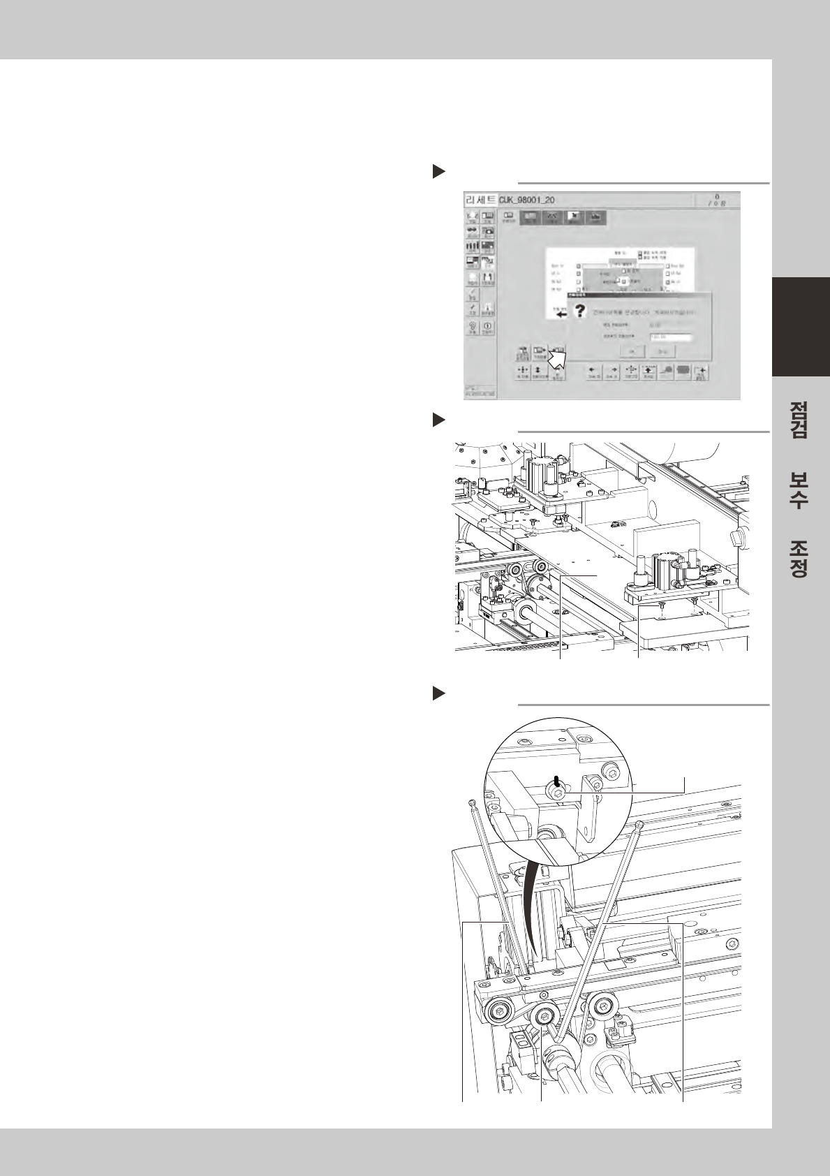 8-10 8 • • 6 텐셔 너 ( 풀 리 ) 의 고정볼트를 체결합 니다 . 컨베 이어벨 트가느 슨 할경 우에는 ,텐셔 너 ( 풀리 ) 의위 치 를조정 하 고고 정 볼 트를체 결 해주십시 오 . c 주의 풀리고 정 볼 트의체결토르크 는 ,5.5N • m 입니다 . 너 무심 하게조 이 지않도 록주 의 해주십시 오 . n 요점 본체 장비의 컨 베 이어 벨트…