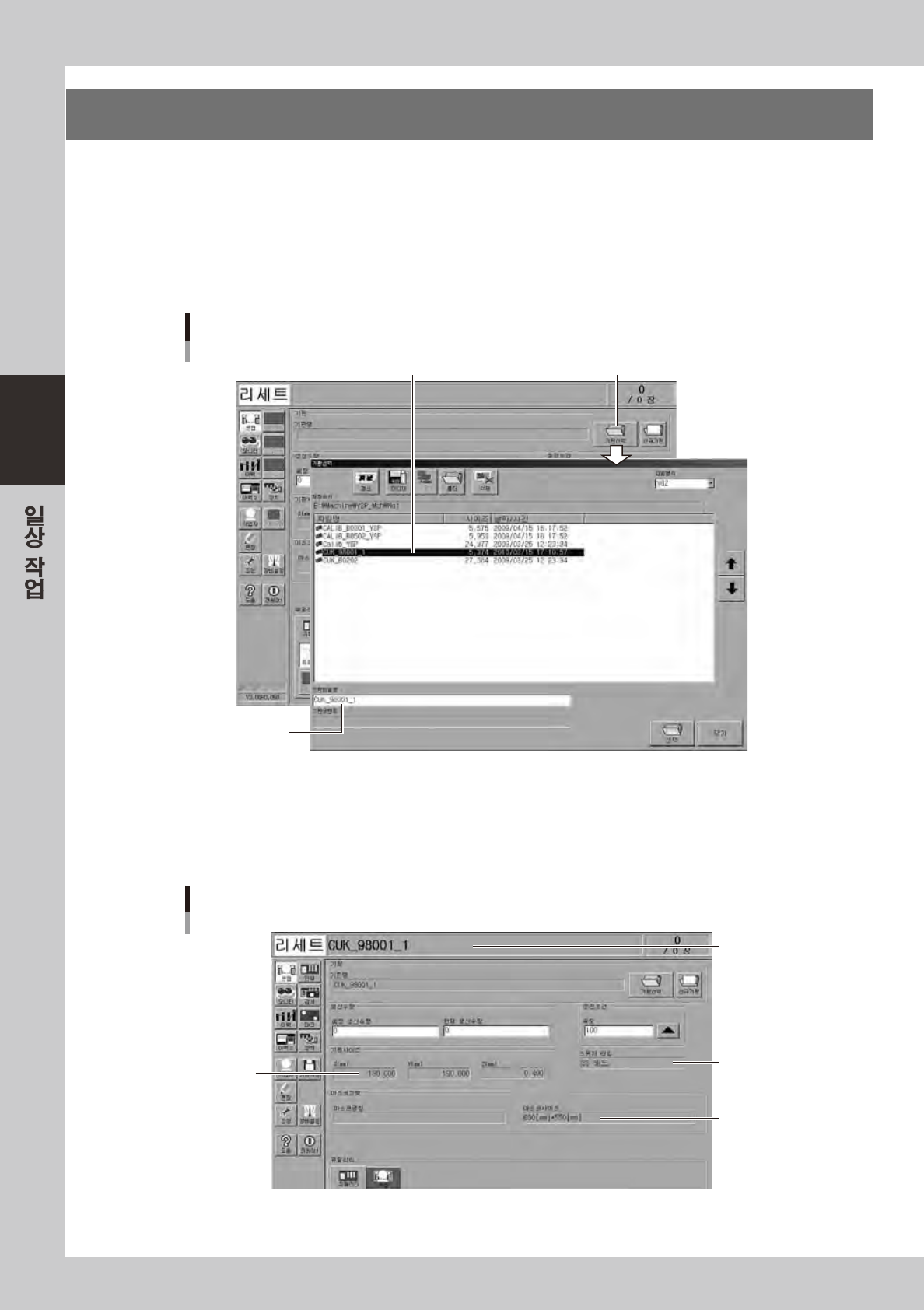 1. 기판데이터가미선택인경우에는셋업화면의[ 기판선택 ] 버튼을눌러서 ,등록되어있는기판데이터