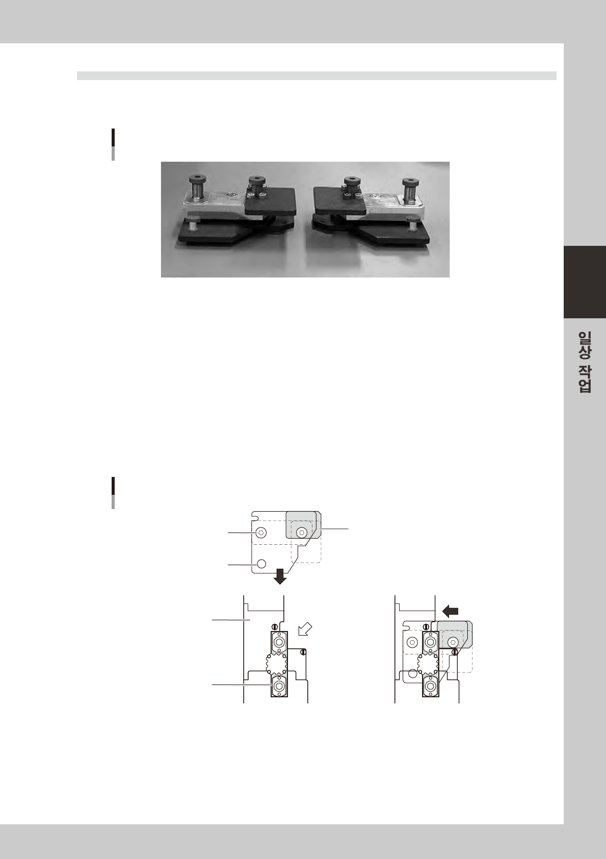 1. 마스크어댑터를아래그림과같이장비안쪽에서부터양쪽가이드사이에마스크클램프를끼우듯