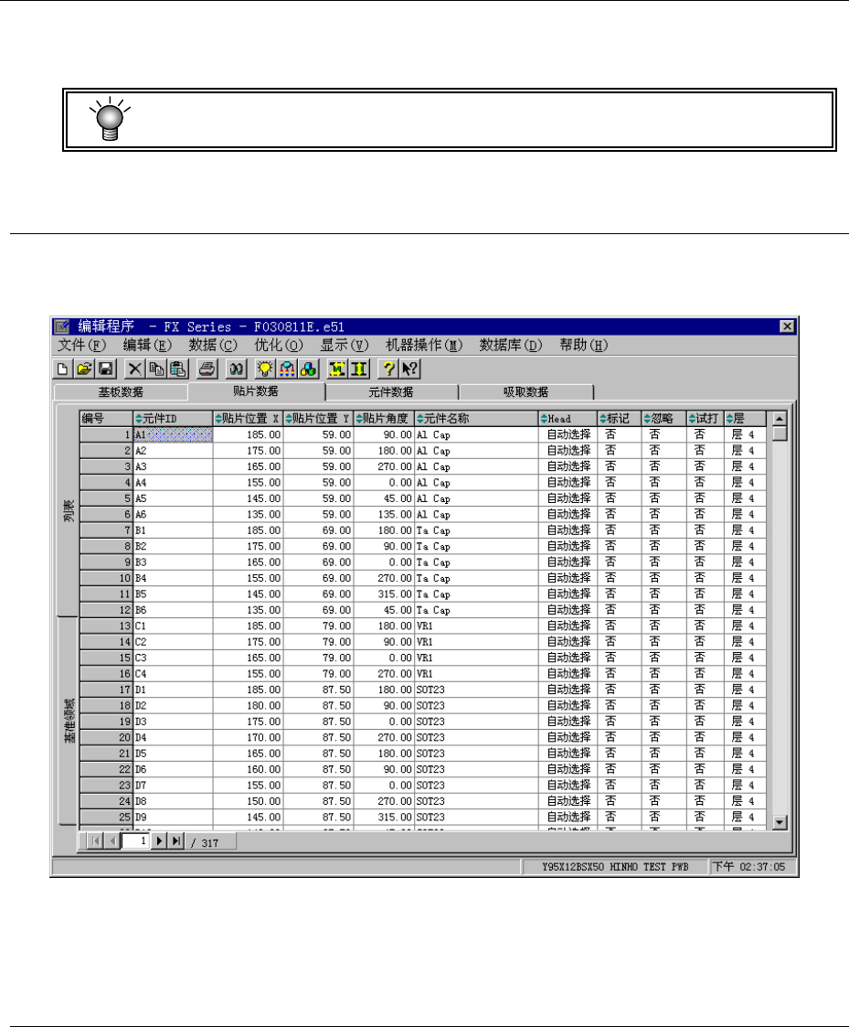 输入“元件 ID”“X”“Y”、“贴片角度”、“元件名称”。其他的项目(HEAD--贴片