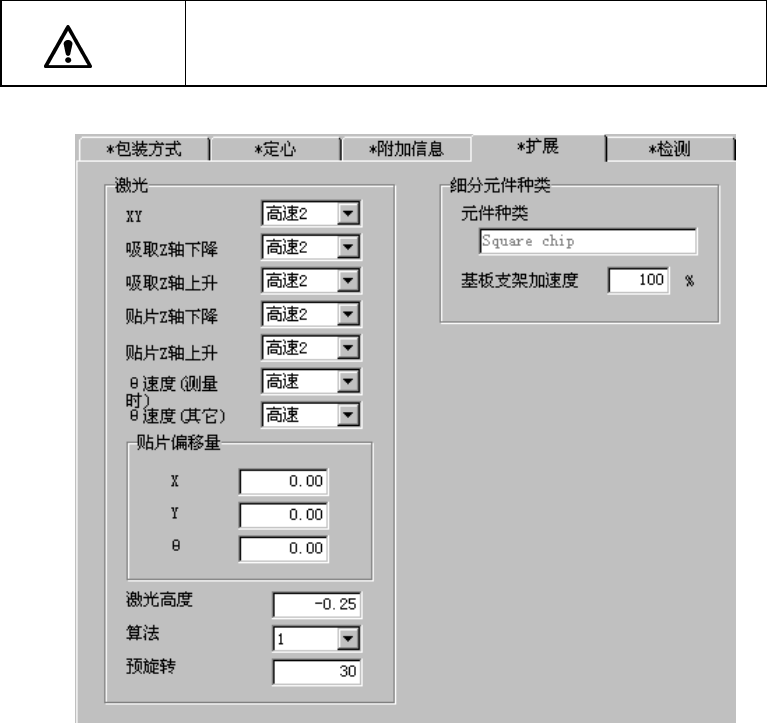 设定激光识别以外的θ轴加速度(激光定心后旋转到贴片角度等)。
