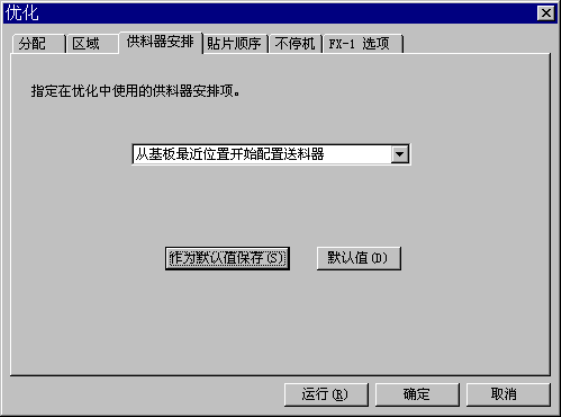 第 4 章 生产程序编辑 Rev03 4-4-1-2-3 供料器安排 指定送料器安排的起点。 在贴片坐标近处安排送料器,可减少从吸取到贴片的时间,缩短贴片时间。 图 4.4. 1.8 ●从基板最近位置开始 配置送料器 : 在元件贴片数量多的最近处优先、 依次安排的原则, 把送料器安排在离基板最近的 位置。( 除此以外,有时也考虑元件的移动速度、基板的加速度等因素。) ●从不必等待贴片头的 位置起配置送料器 : 如果单考虑把送料器配置在基…