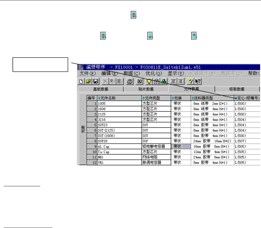 变更送料器分布画面中的数据时,吸取列表画面的排序状态亦被解除。