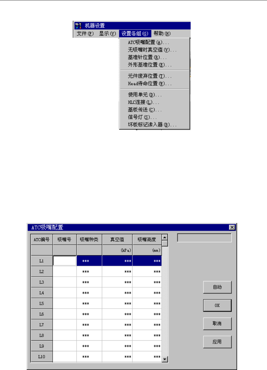 设定配置在 ATC 上的各类吸嘴的信息。