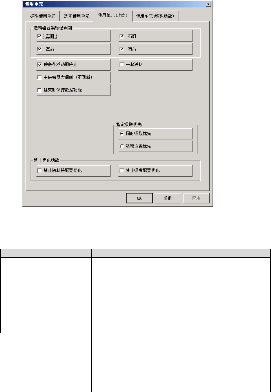 可单击各标签页面,设置[标准使用单元]、[选项使用单元]、[使用单元(功能)]、