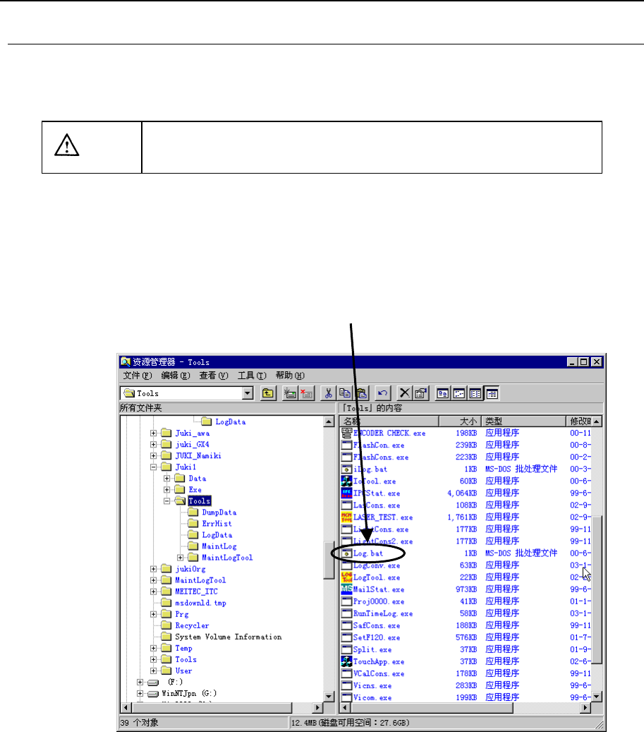 ② 从「C:\Juki\Tools」 文件夹里,双击“Log.bat”(由于电脑的设置不同,有时不显示后