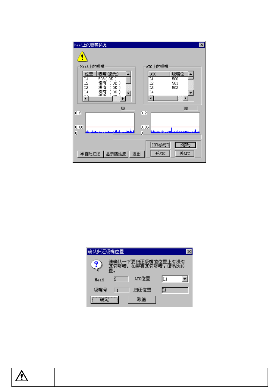 按下[确定]按钮,让吸嘴归还到指定的 ATC 位置。只要有 1 支吸嘴归还后,剩下的全部将