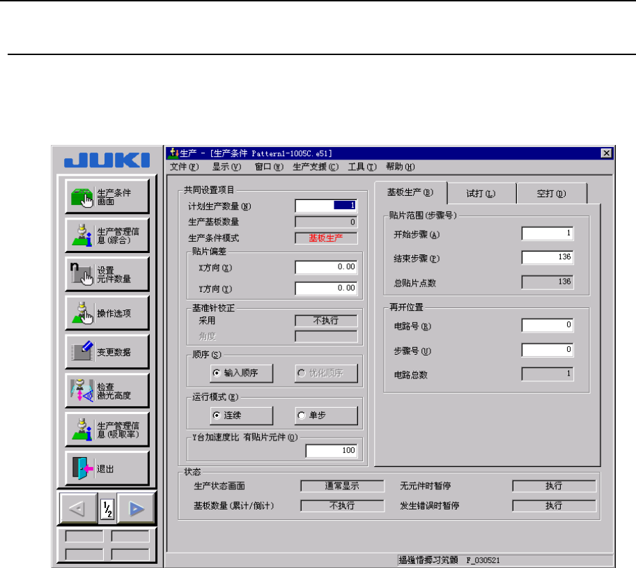 在主画面上选择[生产]/[基板生产],或按「生产(基板生产)」命令按钮后,出现如下