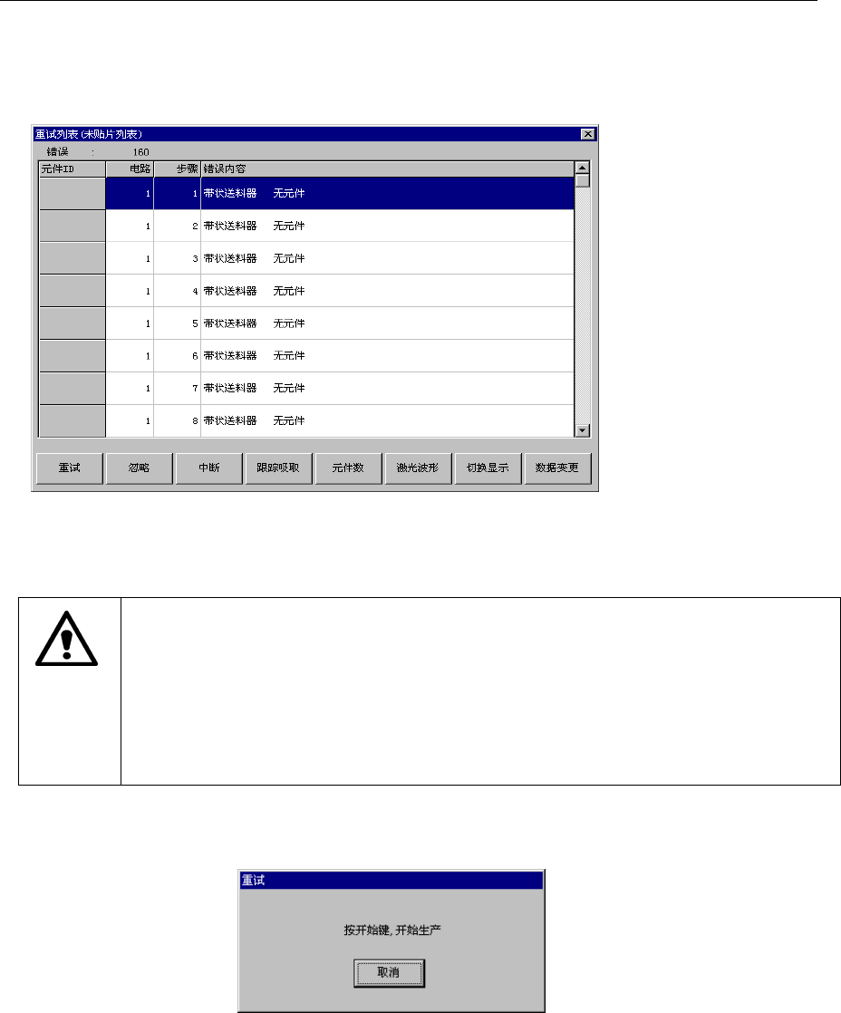 图 2.10.4.1 重试列表显示(未贴片列表)