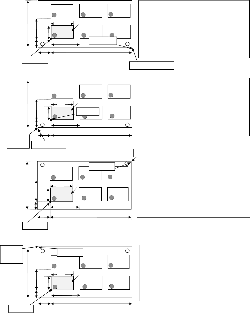 第 4 章 生产程序编辑 Rev03 2) 多电路非矩阵板 是指各电路的角度和各电路间的距离(间距)不固定的基板(参见下页举例)。 以基板原点为基准,分别指定各电路的每个 X,Y,角度,因此,即使电路间的间距、角度不同也 可以个别处理。当然,通过指定固定的电路间距和角度,也可制作多电路矩阵板数据。 图 4-3- 3-5 基板数据 尺寸设置画面(多 电路非矩阵板) 图 4-3- 3-6 基板数据 电路配置画面(非 矩阵电路板) 4-22
