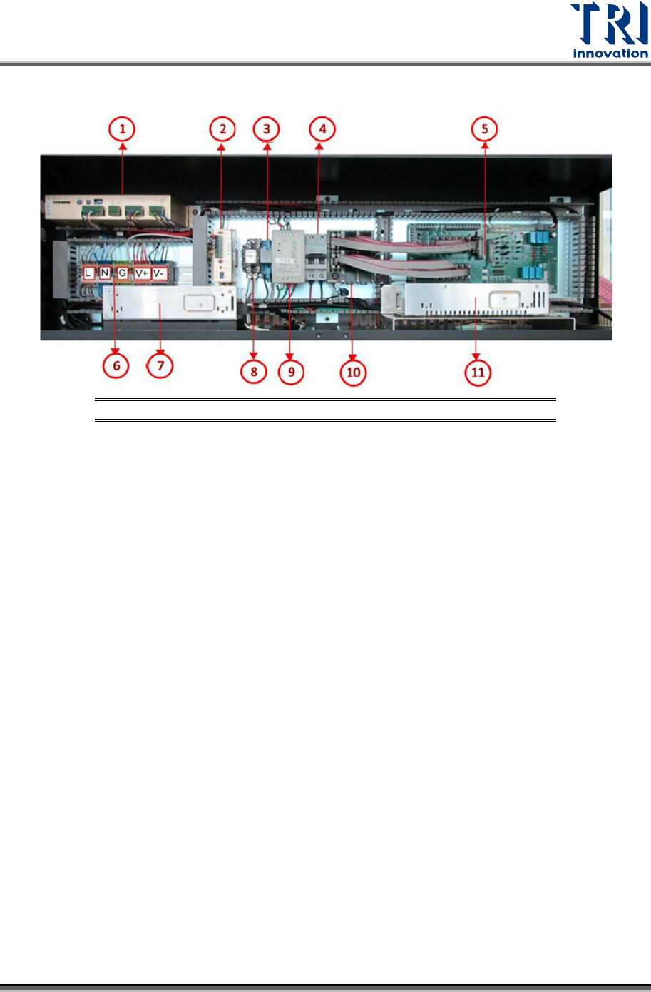 Test Research, Inc. TR7600 SIII Series User Gu ide – Hardwa re 23 4.2.2 L EFT M ODULE B OARD L AYOUT Figure 23: Left Mod ule Board Layout 1) Conveyor Driver 2) Auto W idt h Driver 3) X-Ray Power Relay 4) Extension Cable …