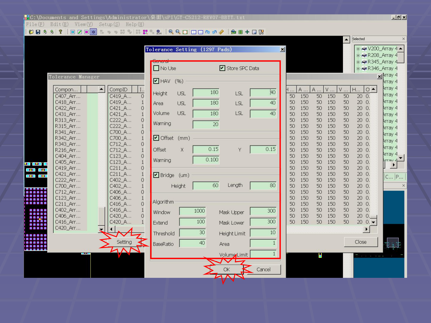 SPI 检 查标 BGA 准参数 设置