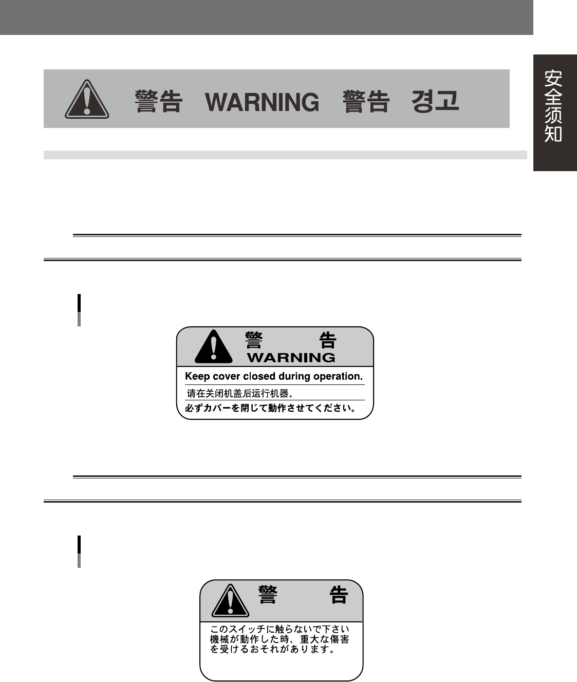 切勿随意触摸、改造机盖开关。如果在解除机盖开关的状态下运行机器,机器的可动部碰触身体可能有受伤的危险。