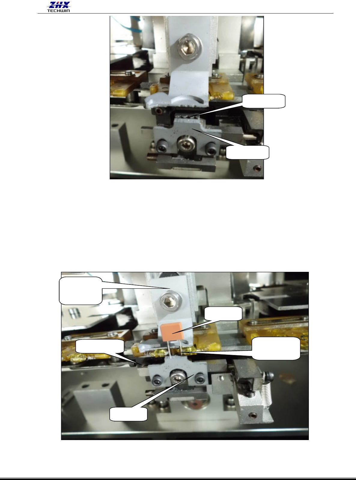 3)松开 CTA 下面的三个固紧螺丝,然后转动调整螺丝,使标准件的两脚正好在送料槽片的两