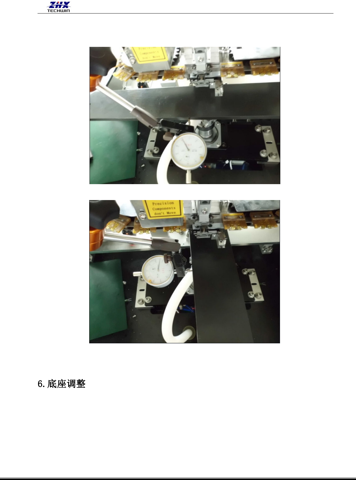 ZHX-R20C&D(-IN)立式插件机说明书 深圳市中禾旭精密机械有限公司 www.zhxai.com - 120 - (2) 如果四个读数的偏差值都不一样,第一个调节步骤就是先调节 LWGY-00043, 其它的三个步 骤就是调节 LWGY-00059。 (3)如有一个读数有偏差,而其它三个一样,只需调节 LW GY-00059。 1)底座高度调整。(参见下图)