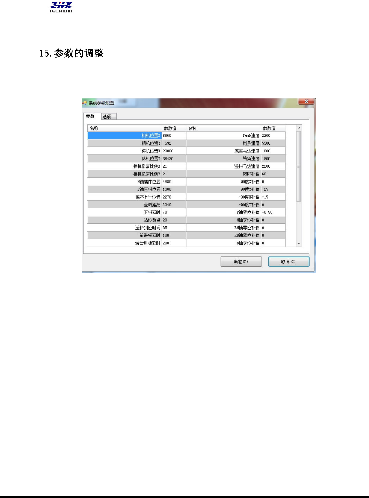 确定: 保存修改好的参数。