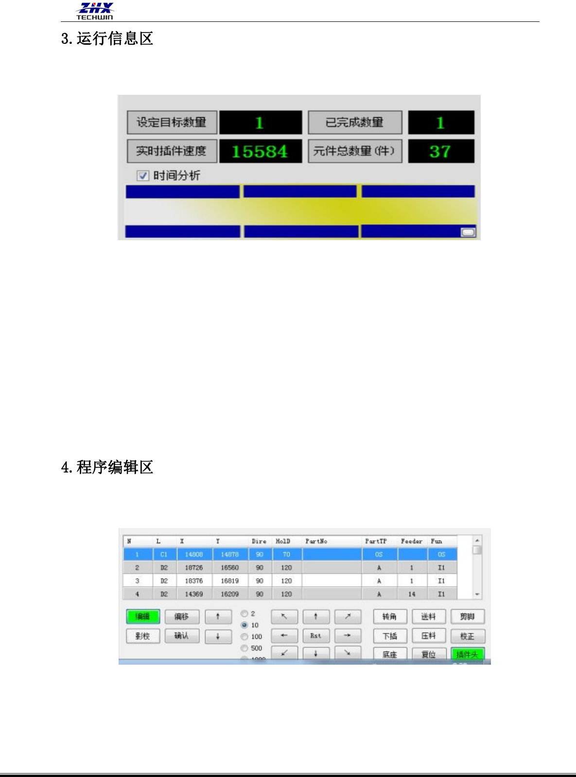 (如图):此区是用来新建或修改坐标程序。进入程序编辑区要先在控制面板区点击 单步,