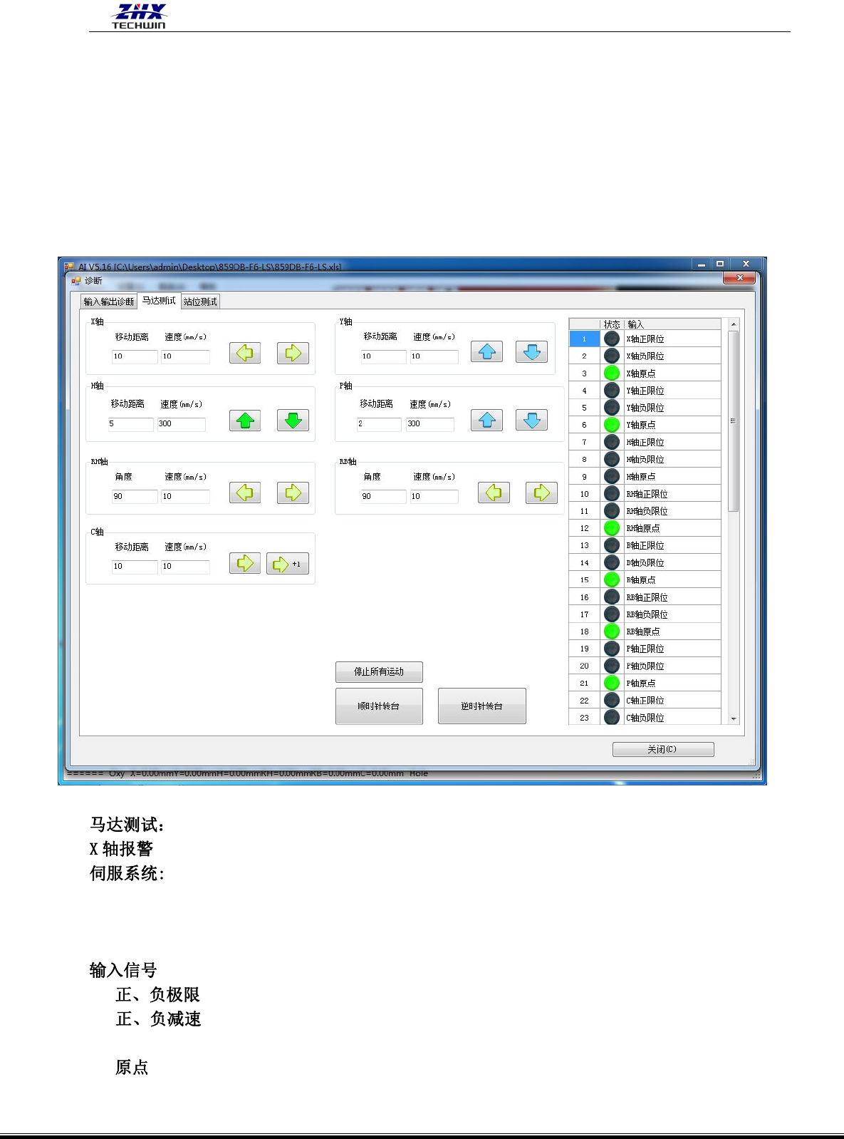 是指各轴上的光电开关当前输出(输入给电脑)的信号状态。