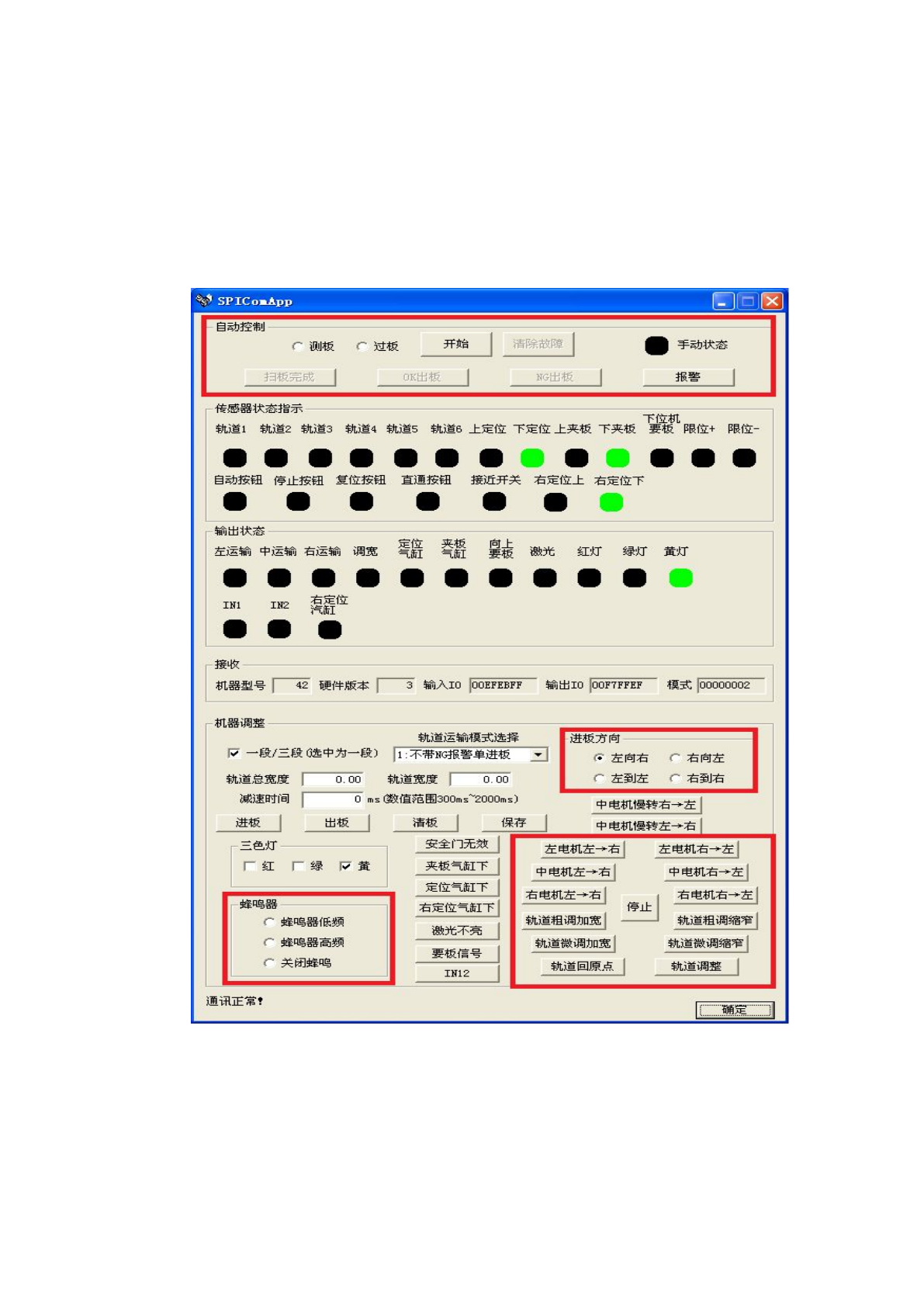2、调试轨道:打开 SPIComApp.exe 控制软件,按 PCBA 尺寸调整轨道的宽度,轨道宽度需要比 PCB
