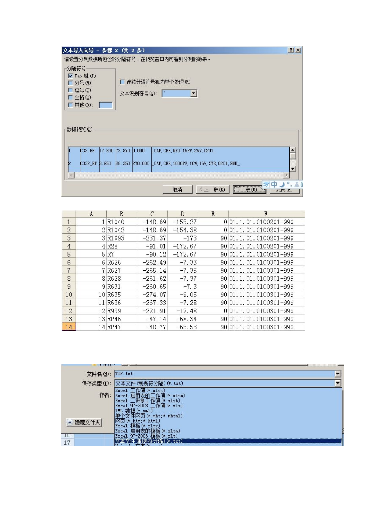 修改后的数据排列方式如下:1、序号,2、元件位号,3、X 坐标,4、Y 坐标,5、元件角度,6、元件料