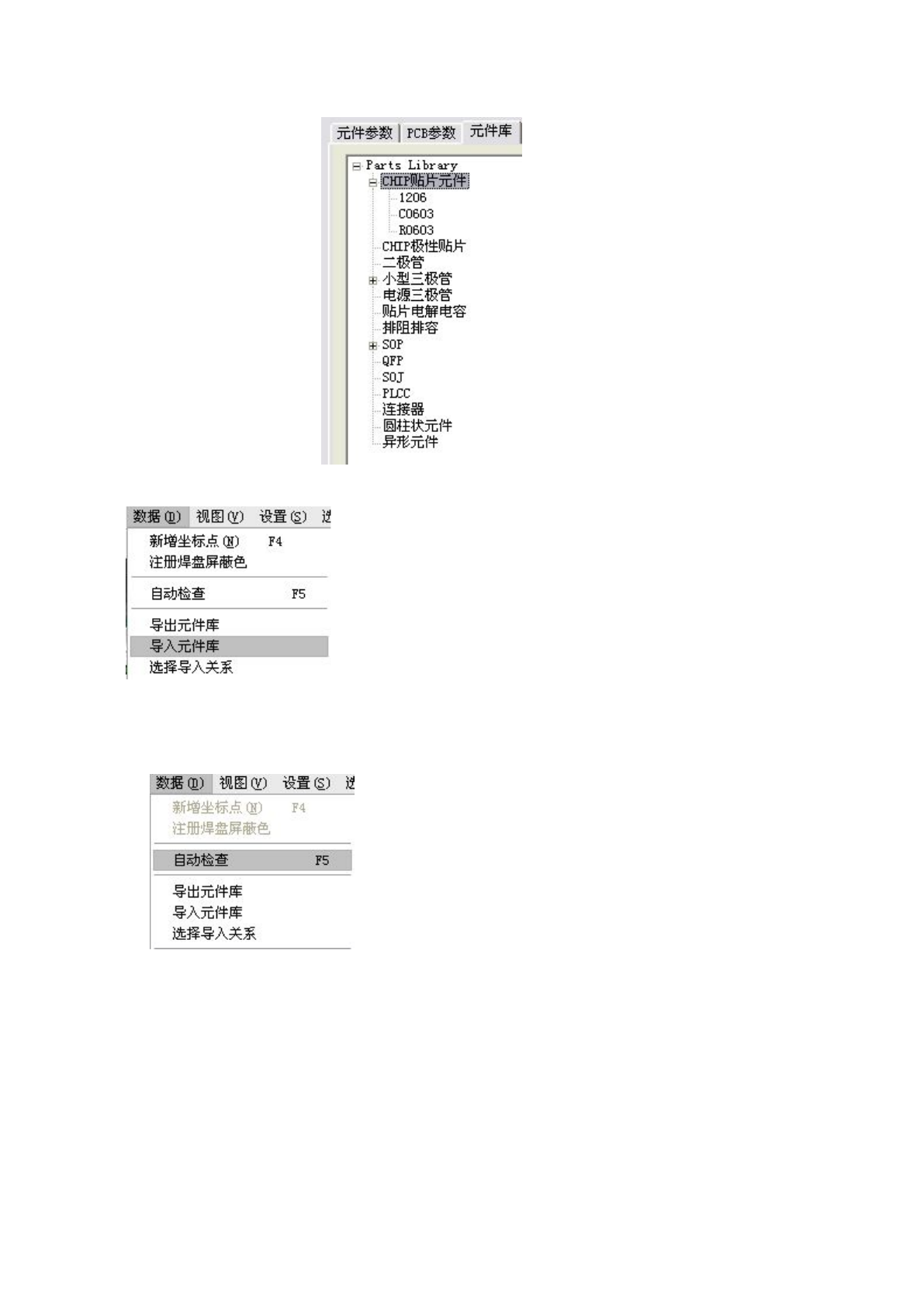 的元件定义导入进来,方法如下:点击“数据—导入元件库”可将保存的元件数据从元件库中读取出来