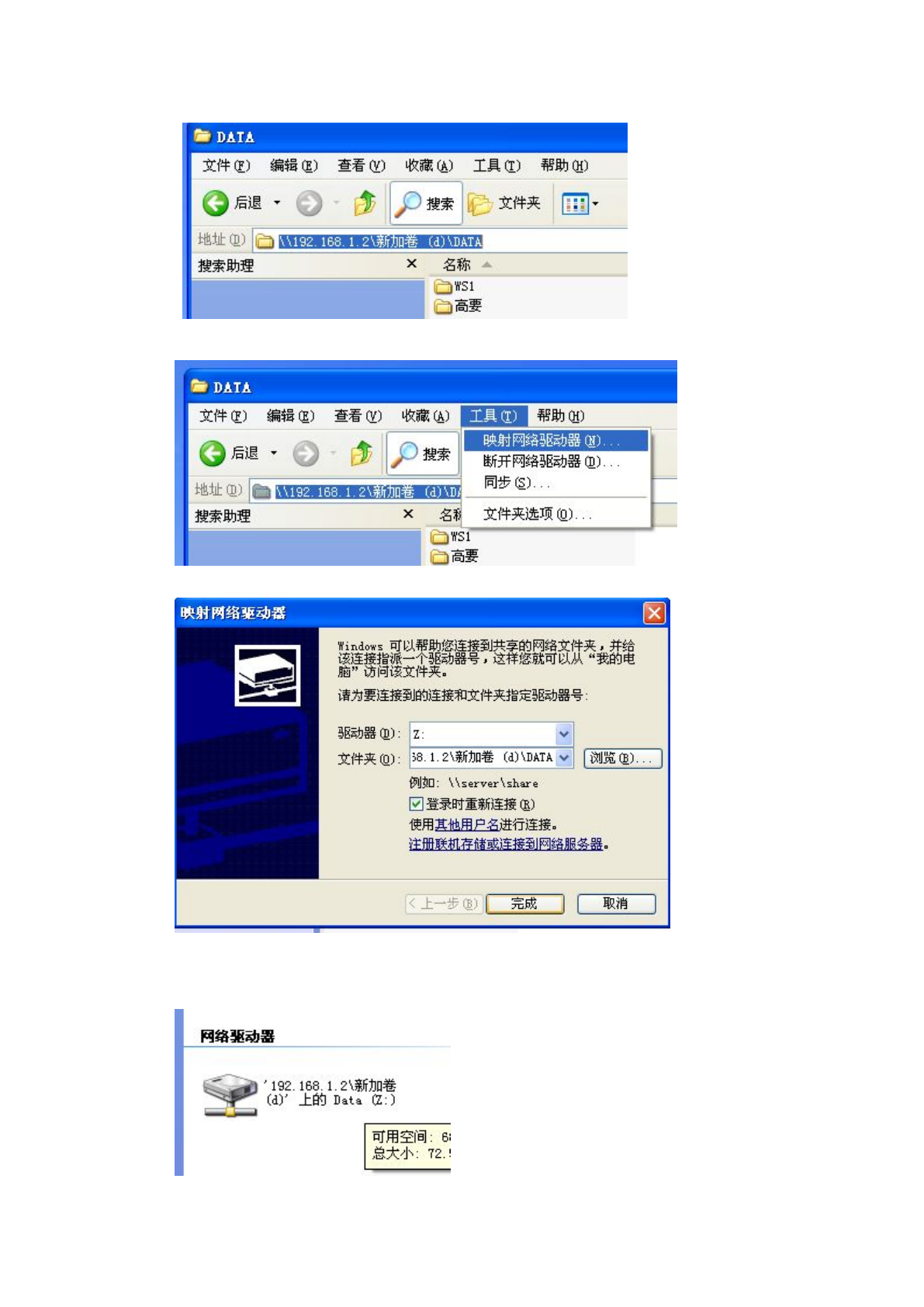 十九、双击“DATA”文件,然后再 IP 地址栏里可以看到完整且是映射的路径,如下图: