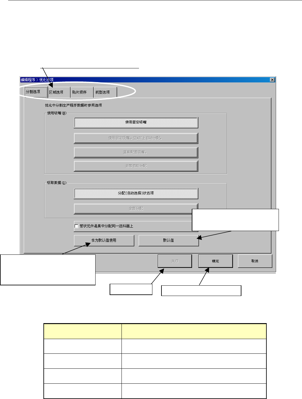 分割选项 设置分配吸嘴及吸取数据时的优化参照选项。