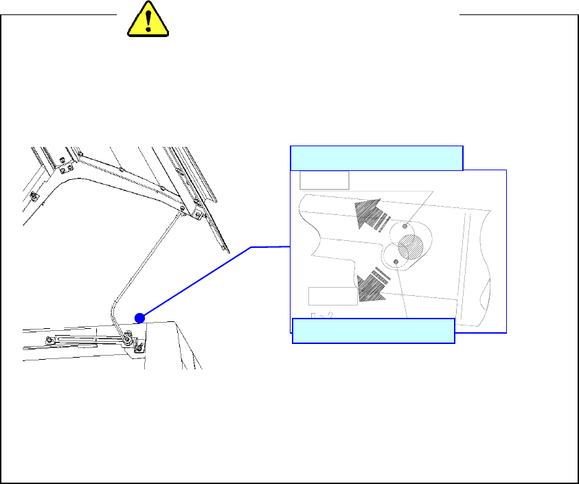 操作手册 II Rev00 1-4 ◆打开安全盖时要把盖子向上开足直到上了锁,确认上锁之后再放开手。 (把盖子开到最大限度就会进入上锁状态。 ) *没有上好锁就放开手时,盖子有落下来的危险。 ◆ 关盖子时先解开锁,再关闭盖子。 把盖子向上提,在全开状态下,把手把向上移动解开锁。 (请注意,解开锁时不要被落下来的盖子碰伤。) *不要把盖子、杆等压得太重。 打开:确认杆子插到头。 关闭:杆子上提,解锁。 <开关安全盖时的注意事项> 上锁 解…