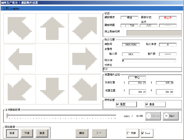 从菜单栏中选择“机器操作”/“跟踪”/“贴片位置”后,显示如下画面。