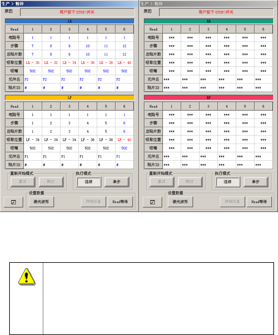 按下<STOP>开关后,将进行吸嘴交换动作。为了避免人身伤害,在运行