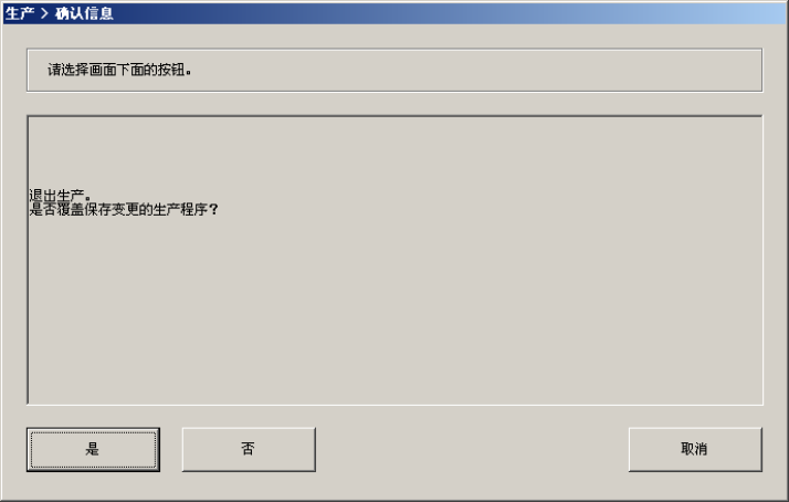 请单击“是”或“否”选择是否保存生产程序(含生产管理信息)。