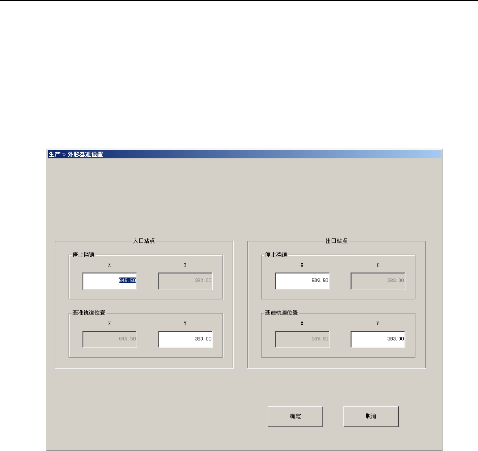 操作手册Ⅱ Rev00 3-40 3-5-1-5 外形基准位置示教 在生产程序上,画面内容根据基板数据的基本设定中的定位方式而变化。 在这里, “定位孔基准(使用基准针) ” 、或 “外形基准位置” 的调整, 可在入口站点、 出口站点分 别进行。 ( 1 )外形基准位置 详见“第 4 章 机器设置 的 4-4-4-4 外形基准位置” 。 [停止挡销] :可进行停止挡销的示教。 [基准轨道位置] :可以进行基准轨位置的示教。 图 3-5-…