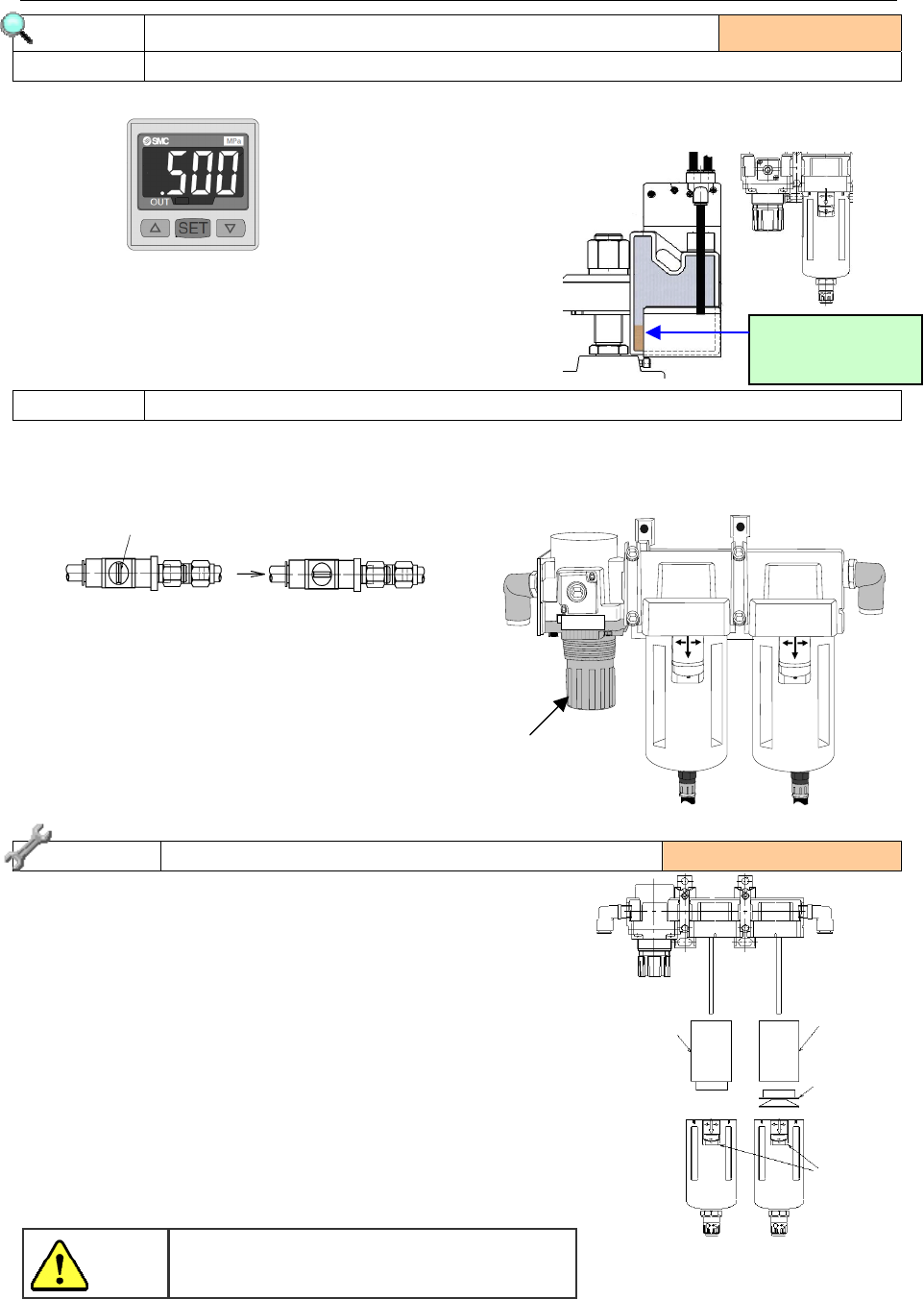 1) 在压力表上确认压力为 0.45Mpa ~ 0.55Mpa。 3) 若是排水管连接的瓶内存了水、