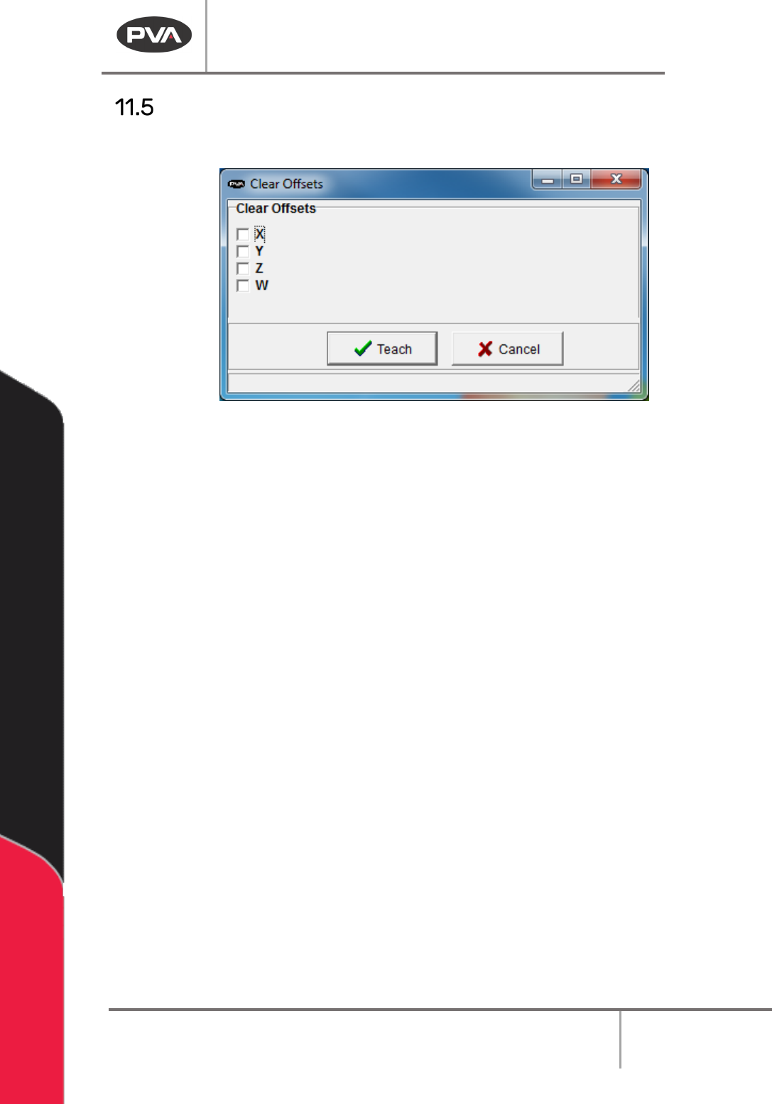 3. Select “Teach” to clear the offsets (X, Y, Z, W).