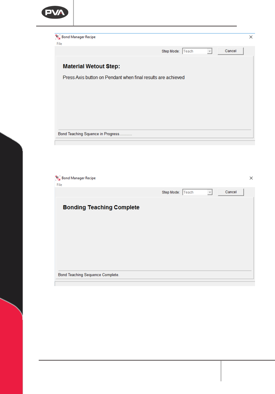Machine Operati on Manual Revision L / February 2020 Page 199 of 2 00 Figur e 226 : Materia l Wet Out The screen be low will be shown w hen the com plete bo nding seq uence ha s been taugh t. Figure 227 : Bonding Co mple…