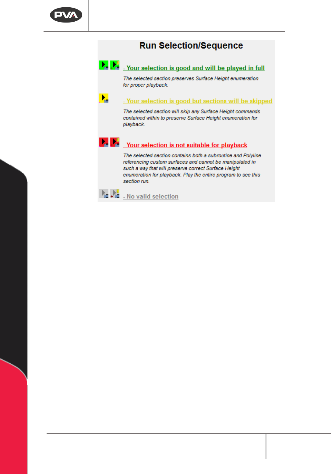 at the time of playback. If the selection can be played but will skip some surface height