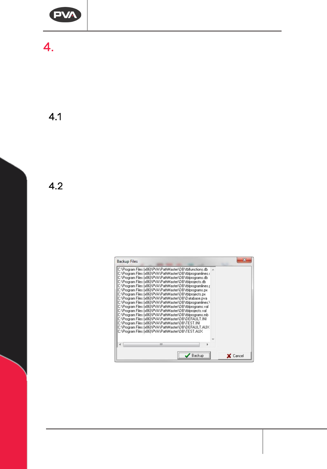 each day. PathMaster® uses a rolling ten-day automatic backup scheme. A backup file will