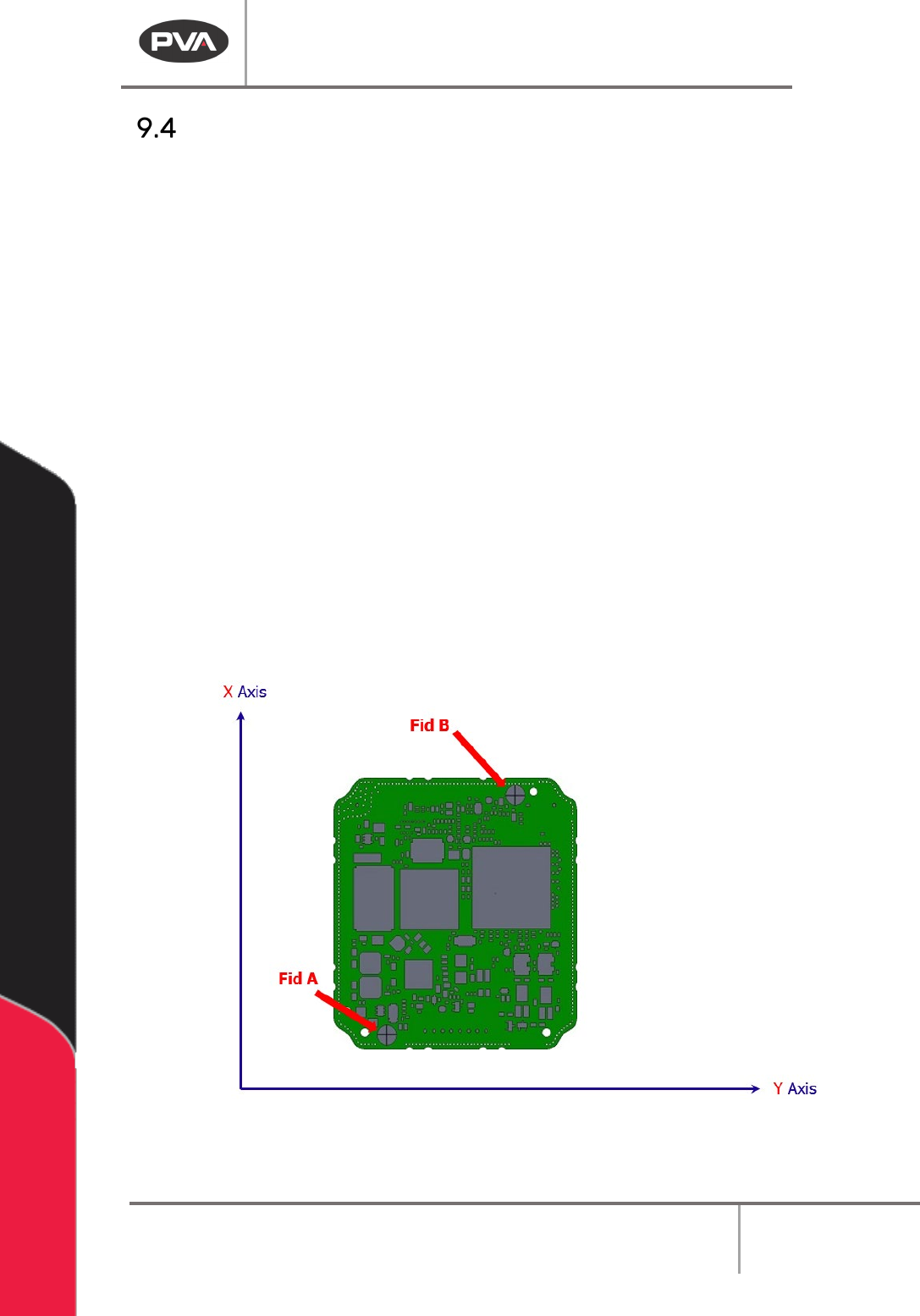 correction to fiducial B to find fiducial B on the PCB. When fiducial B is found, the rotational