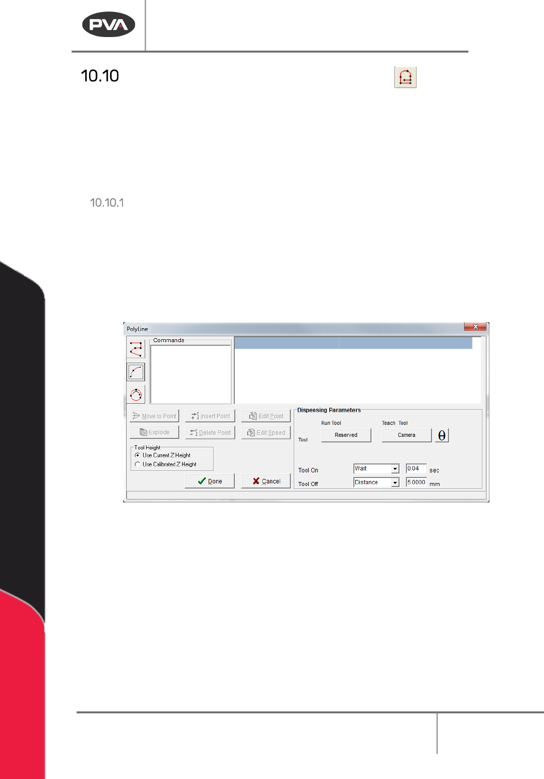 path segments. Entering the Polyline edit window allows the user to make use of Surface