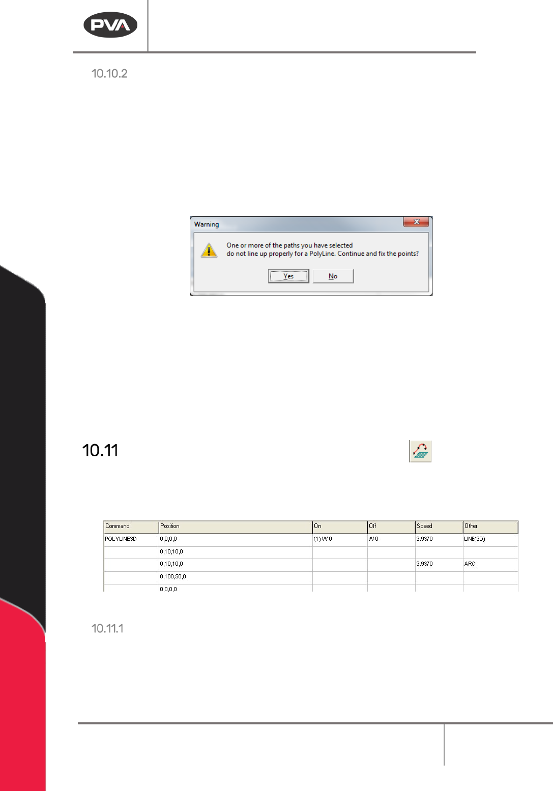 Machine Operati on Manual Revision L / February 2020 Page 89 of 2 00 Figure 99 : Teach a Point As each segme nt is cre ated, i t is added to the comman d list on the l eft of the P olyline program table. The polyline is …