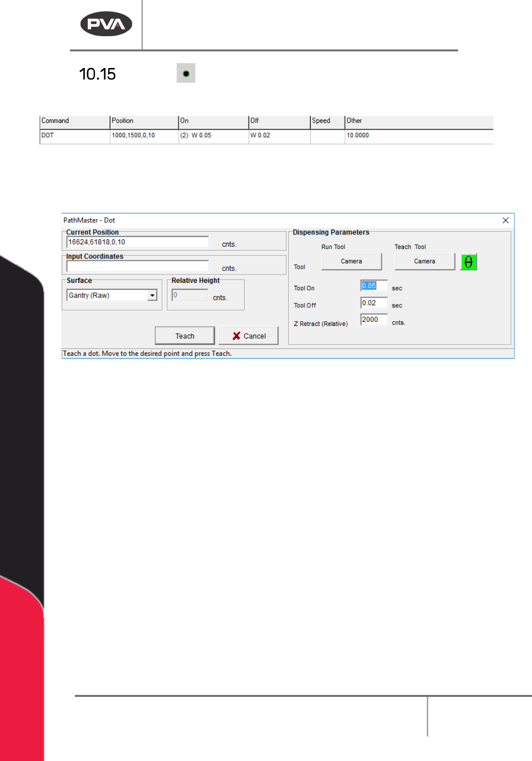 6. Select “Teach” to save the command, or “Cancel” to exit and not save the