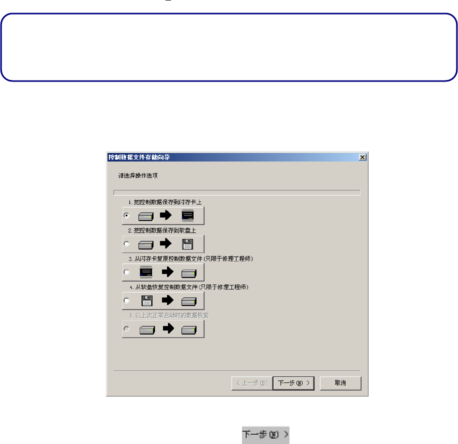 补充说明:在软盘或闪存盘上保存的控制数据文件经过文件压缩后再保存。能够从软盘或