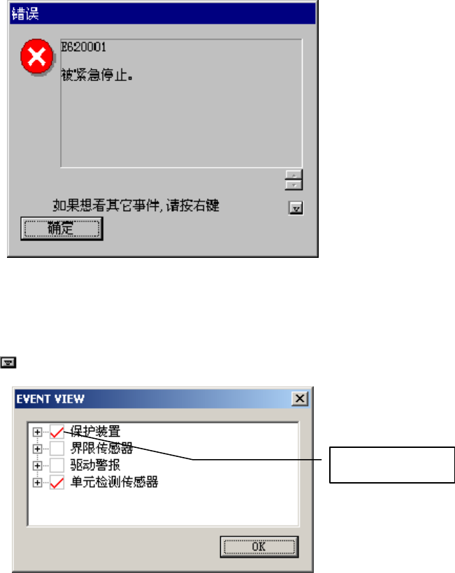 当安全盖打开、按下[紧急停止]开关、或各轴的伺服驱动器发出警告时,显示如下画面。