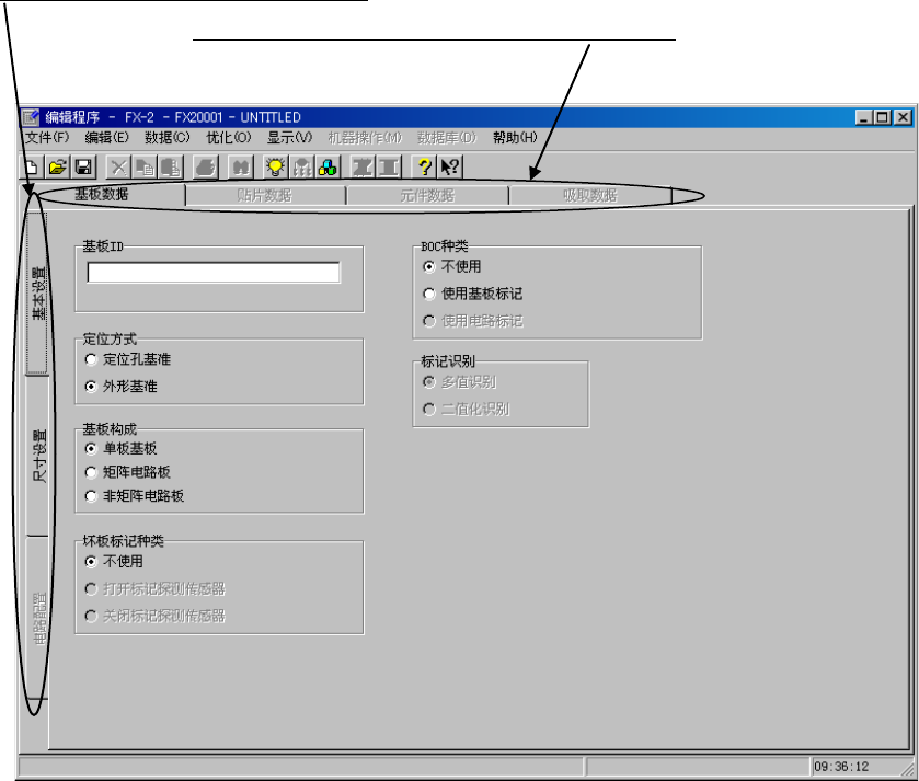 切换基板数据/贴片数据/元件数据/吸取数据。