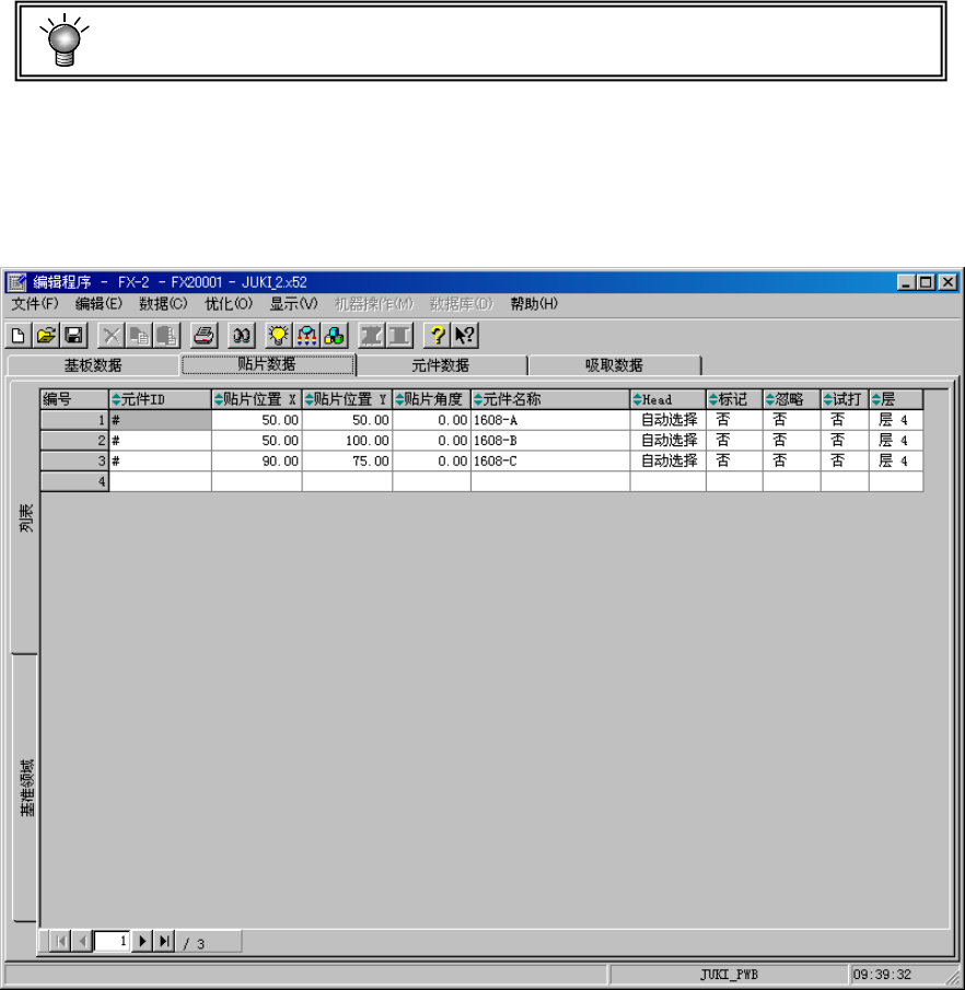 基板数据建立后,单击画面上的「贴片数据」选项卡,显示制作贴片数据画面(下图是已经