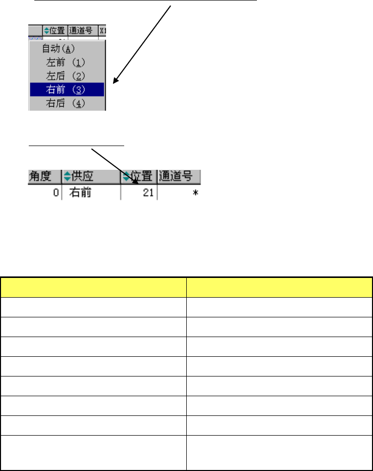 在表格画面中可编辑“角度”、“供应”、“位置”、“类型”、“通道号”、“吸取坐