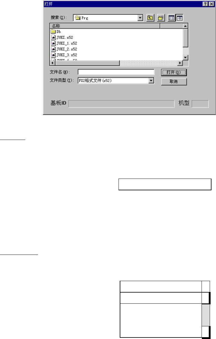 第 5 章 编辑程序 5-7-3 文件菜单 文件( F )菜单的结构如下。 图 5-7-3 文件菜单 有关程序名和文件名,请参见『 5-3- 9 程序名』及『 5-3- 9 扩展名』的说明。 5-7-3-1 新建 现有数据初始化后, 程序名定为 U NTITLED 。 在现有数据进行初始化之前, 先检查程序是否有变 化,如有变化,会显示制作中的数据可能丢失的提示对话框。 5-7-3-2 打开 读出保存在磁盘里的程序。在读出前, 先检查现…